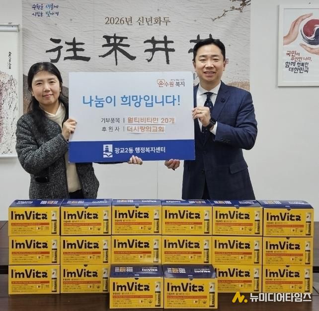 영통구 광교2동은 지난 13일 더사랑의교회가 지역사회 내 어려운 이웃을 돕기 위해 광교2동 행정복지센터에 멀티비타민 20통을 전달했다고 밝혔다. 이번 기부는 소외되기 쉬운 이웃들에게 따뜻한 마음을 전하고자 마련됐다.