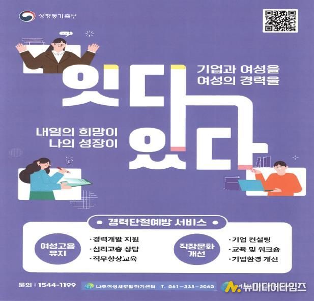 나주시는 지역 여성의 지속 가능한 고용 유지와 일하기 좋은 직장 환경 조성을 목표로 여성과 기업을 대상으로 한 맞춤형 경력단절 예방 서비스를 강화한다고 19일 밝혔다.