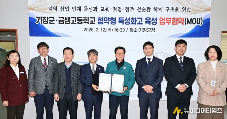 기장군과 금샘고등학교는 상호 신뢰를 바탕으로 2026년 3월부터 5년간 지역 기반 산업 인재 육성을 위해 실질적인 협력을 추진하기로 뜻을 모았다.