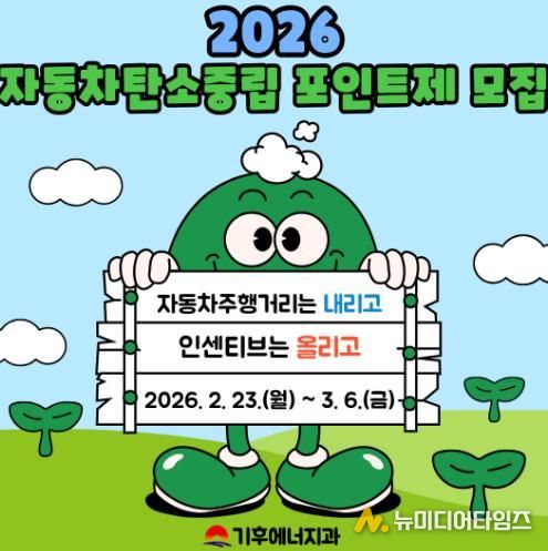김천시가 시민들의 자발적인 온실가스 감축을 유도하기 위해 '2026년 자동차 탄소중립포인트제'참여 차량 450대를 오는 2월 23일부터 3월 6일까지 선착순 모집한다고 밝혔다.