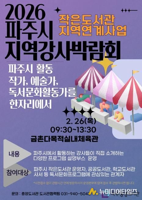 파주시 중앙도서관은 오는 26일 9시부터 금촌다목적실내체육관에서 녪파주시지역강사박람회’를 개최한다.