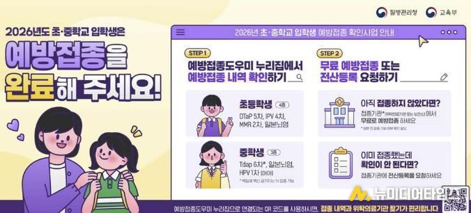 보건소는 교육부와 협력하여 매년 초·중학교 입학생의 필수 예방접종 기록을 확인하고 접종을 독려하고 있다.
