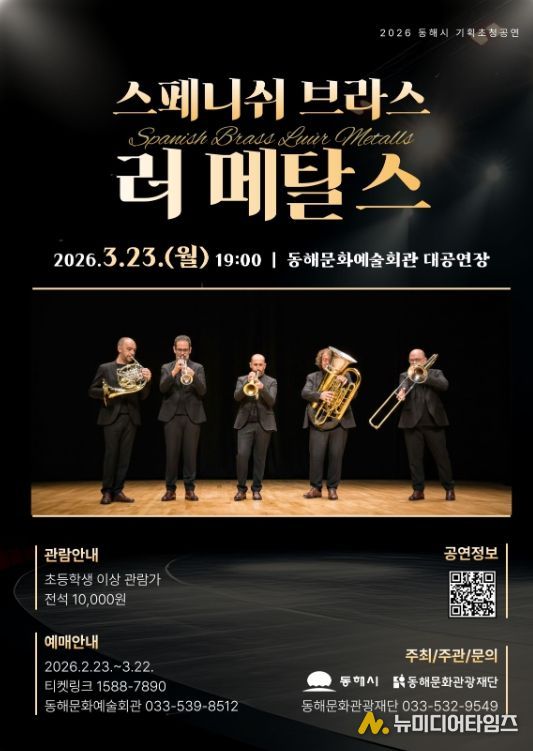 동해문화관광재단은 오는 3월 23일, 동해문화예술회관 대공연장에서 세계적인 금관 5중주단 '스페니쉬 브라스 러 메탈스'를 초청해 기획공연을 개최한다고 밝혔다.