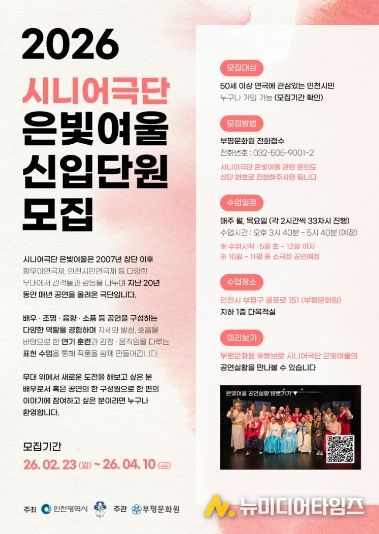 부평문화원 관계자는 “20년의 시간을 이어온 ‘은빛여울’이 올해도 새로운 무대를 준비하고 있다”며 “공연을 통해 의미 있는 경험을 쌓고 싶은 시민 여러분의 많은 관심과 참여를 바란다”고 말했다.