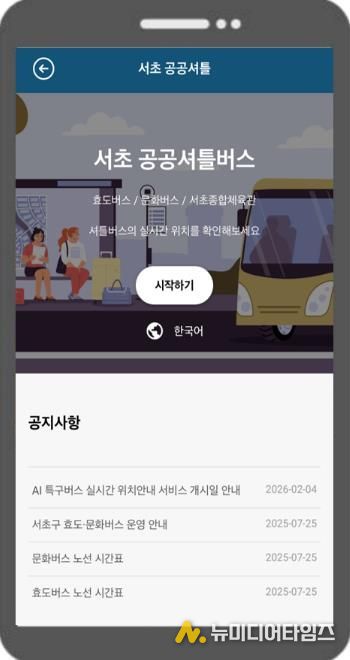 전성수 서초구청장은 “주민 누구나 정확하게 공공 셔틀버스의 위치와 시간 정보를 확인하고, ‘서초 공공 셔틀버스’ 웹페이지를 통해 편리하게 사용할 수 있도록 했다”면서, “앞으로도 스마트 기술을 행정에 적극 도입해 주민 체감형 교통복지를 실현해 나가겠다”고 말했다.