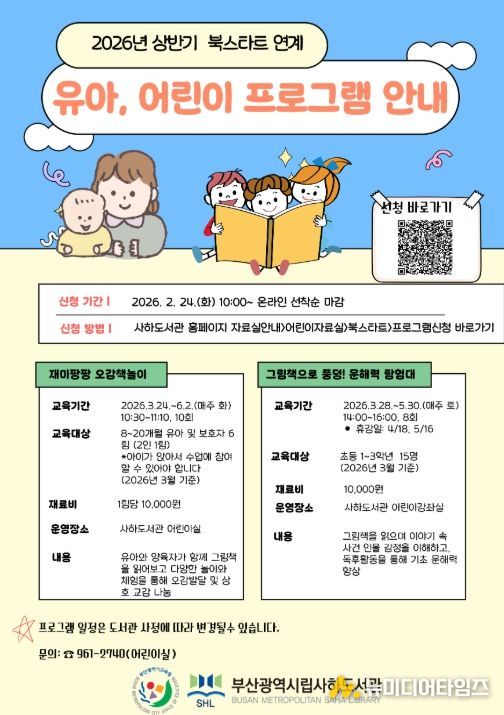 김정남 사하도서관장은 “이번 북스타트 연계 프로그램은 아이들의 언어 이해력과 독서 흥미를 키우는 계기가 될 것”이라며 “그림책을 매개로 자녀와 보호자가 정서적으로 교감하며 가정 내 독서문화가 확산하길 바란다”고 말했다.