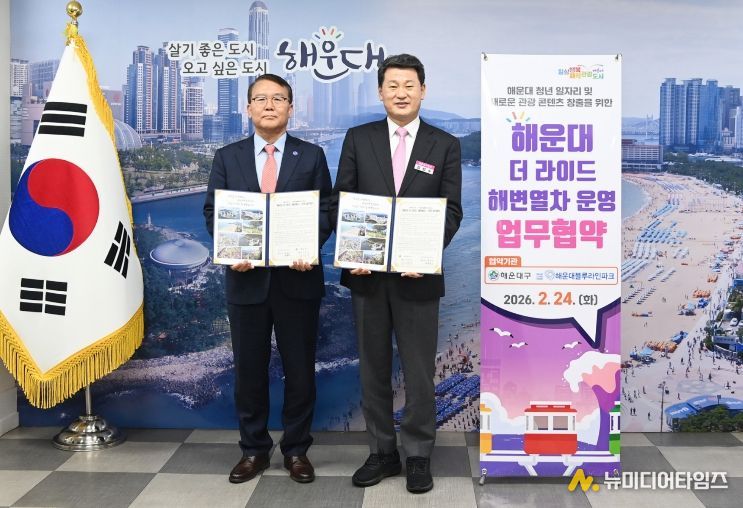 구는 24일, 해운대블루라인파크와 업무협약을 체결하고 관광객들에게 차별화된 볼거리를 제공하는 동시에 지역 청년 예술인들의 안정적인 일자리 창출을 위해 상호 협력하기로 뜻을 모았다.