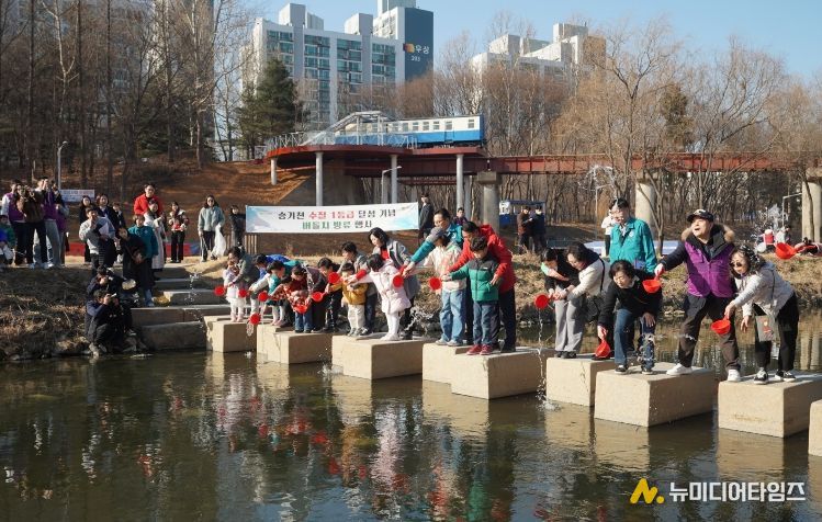 연수구는 25일 승기천 연수체육공원 일대에서 주민, 자원봉사자, 관계기관, ‘1사1하천 가꾸기 운동’ 참여기업 등 200여 명이 참여한 가운데 ‘승기천 수질 1등급 달성 기념 환경정화 및 버들치 방류 행사’를 개최했다.