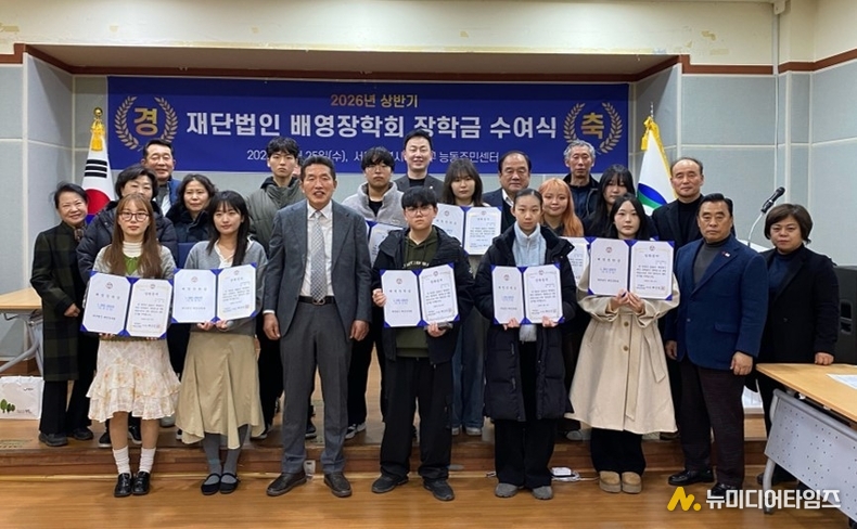 2월 25일, 능동주민센터 강당에서 2026년 상반기 재단법인 배영장학회 장학금 수여식이 성황리에 개최됐다.
