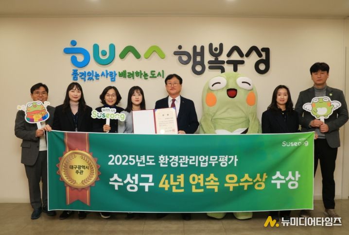 대구 수성구는 지난 24일 대구시가 주관하는 ‘2025년도 환경관리업무 평가’에서 4년 연속 우수상을 수상했다.