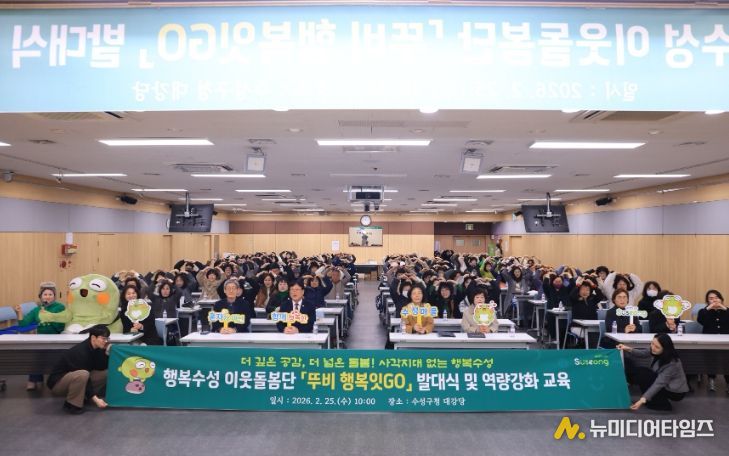 대구 수성구는 지난 25일 구청 대강당에서 지역사회 인적 안전망 강화를 위한 이웃돌봄단 ‘뚜비행복잇고(GO)’ 발대식을 개최하고 본격적인 활동에 나섰다.