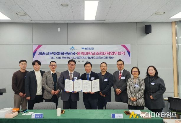 시는 26일 홍익대(세종캠)에서 시 문화체육관광국과 홍익대 조형대학이 라이즈(RISE) 사업을 통한 지역 문화유산의 디지털콘텐츠 개발·구축 업무협약을 체결했다고 밝혔다.
