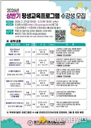 경기도교육청성남도서관이 학생, 학부모, 다문화 청소년 및 어르신을 대상으로‘2026년 상반기 평생교육 프로그램’을 운영한다.