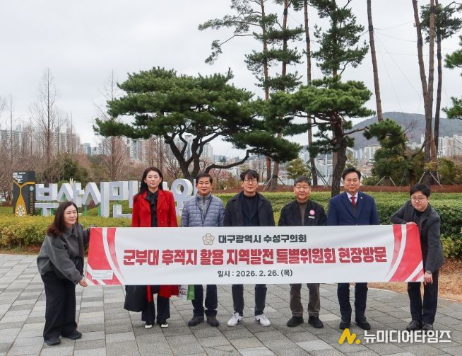 대구 수성구의회 ‘군부대 후적지 활용 지역발전 특별위원회’가 군부대 이전에 따른 후적지 활용 방향을 모색하기 위해 지난 2월 26일 부산시민공원을 방문했다.
