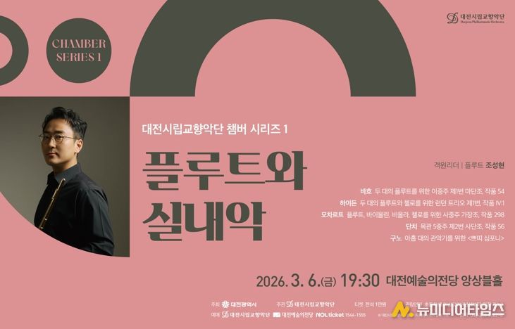 대전시립교향악단은 3월 6일 저녁 7시 30분, 대전예술의전당 앙상블홀에서 챔버 시리즈 1 '플루트와 실내악'을 선보인다.