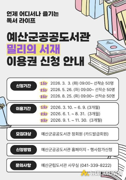 예산군 공공도서관은 지역주민의 디지털 독서 접근성을 높이고 생활 속 독서문화 확산을 위해 ‘구독형 전자책 지원 사업’을 운영한다.