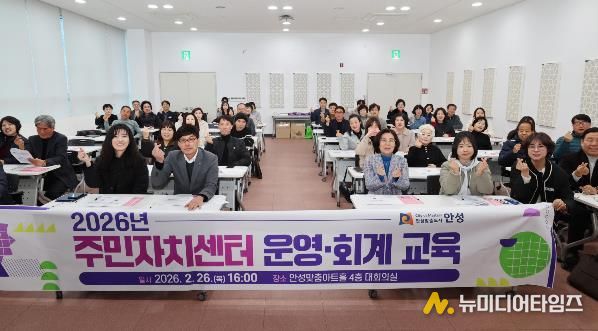 안성시는 2월 26일 오후 4시 안성맞춤아트홀 4층 대회의실에서 15개 읍·면·동 주민자치 위원(회)장, 간사, 업무 담당 공무원 등 45명을 대상으로 ‘2026년 주민자치센터 운영·회계 교육’을 실시했다.