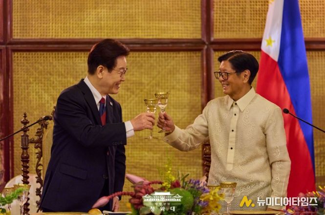 필리핀을 국빈 방문 중인 이재명 대통령 부부는 3일 저녁, 페르디난도 로무알데즈 마르코스 주니어 대통령이 필리핀 말라카냥궁에서 주최한 만찬에 참석했다.