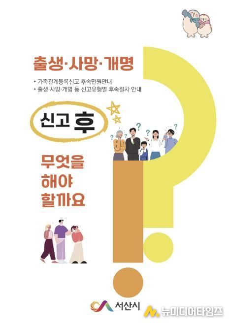 충남 서산시는 가족관계등록신고에 대한 후속민원을 한눈에 알아볼 수 있도록 ‘출생ㆍ사망ㆍ개명 신고 후 무엇을 해야 할까요?’ 책자를 발간했다고 밝혔다.