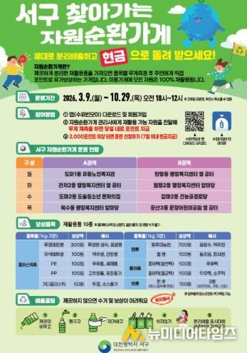대전 서구는 생활폐기물 증가와 재활용품 품질 저하 문제에 대응하기 위해, 이달 9일부터 올해 10월까지 ‘찾아가는 자원순환가게’를 운영한다.