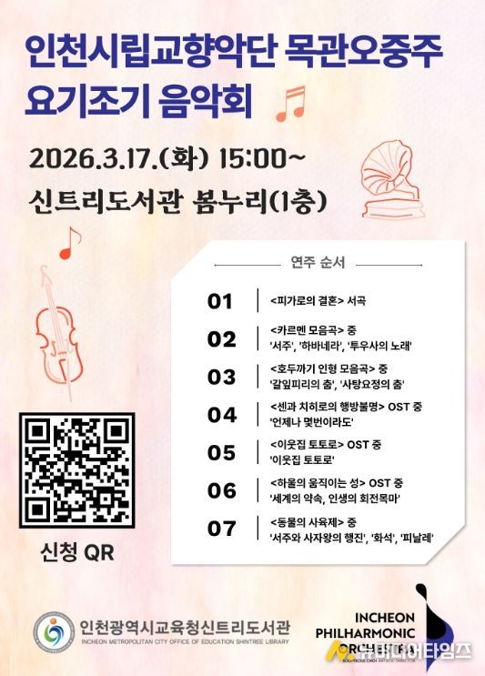 인천광역시교육청신트리도서관은 오는 17일 도서관 내 봄누리홀에서 지역 주민을 대상으로 ‘인천시립교향악단과 함께하는 해설이 있는 음악회’를 개최한다.