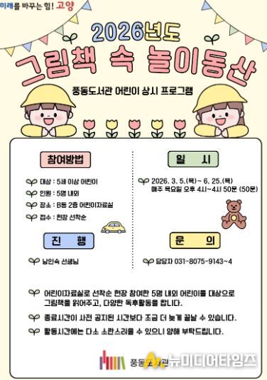 프로그램은 3월 5일~6월 25일 매주 목요일 오후 4시~4시 50분, 풍동도서관 B동 2층 어린이 자료실에서 진행된다.
