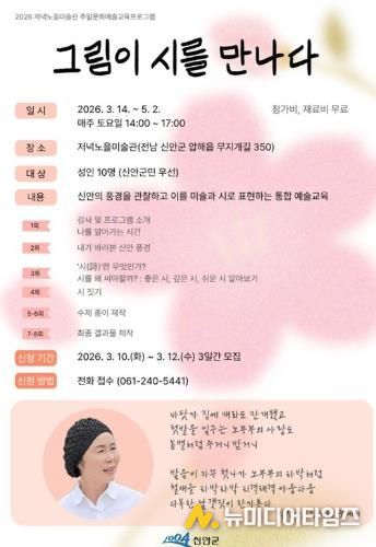 신안군 저녁노을미술관이 지역의 자연과 일상을 예술로 풀어내는 주말 문화예술교육프로그램 ‘그림이 시를 만나다’를 오는 3월 14일부터 5월 2일까지 운영한다.