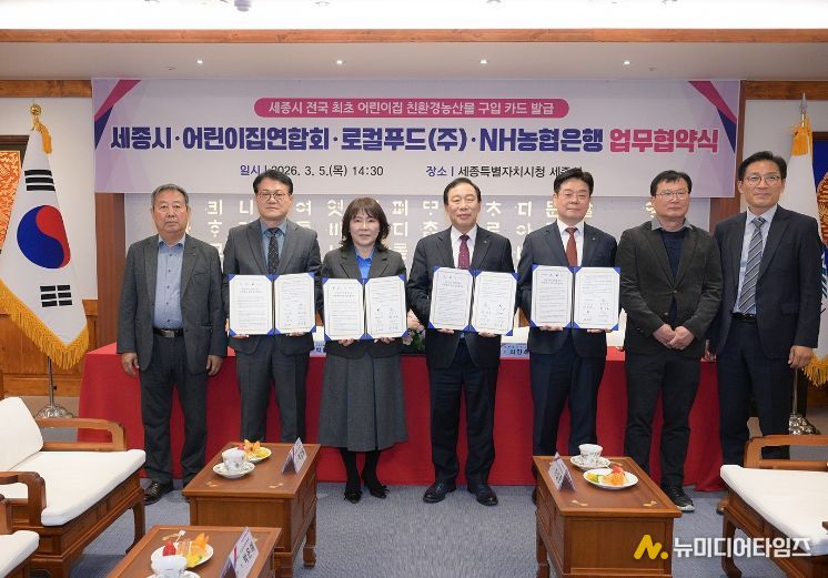 최민호 시장은 “이번 협약을 통해 어린이집 친환경 농산물 바우처 카드 기반 급식 지원 체계를 전국에서 가장 먼저 빠르게 도입하게 됐다”며 “협력해 주신 각 기관에 감사하며 성장기 어린이들의 건강한 식생활 환경 조성을 위해 지속적으로 노력하겠다”고 말했다.