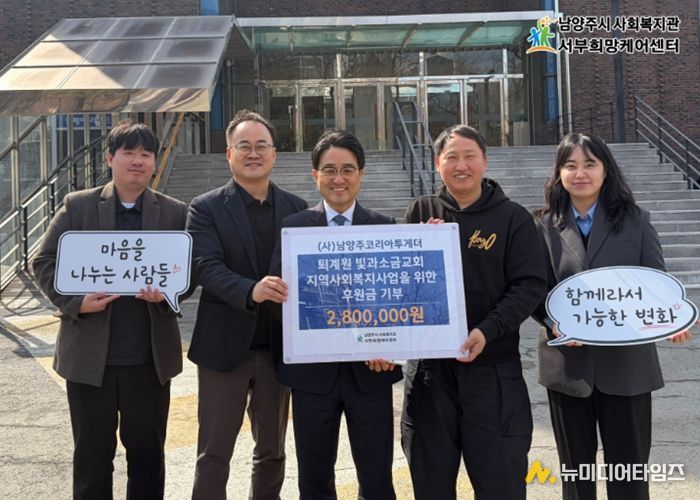 남양주시는 지난 4일 서부희망케어센터에서 (사)남양주코리아투게더와 퇴계원 빛과소금교회, 처갓집양념치킨 퇴계원점이 퇴계원 아동·청소년 외식지원사업 ‘매월일닭’후원금 전달식을 진행했다고 5일 밝혔다.