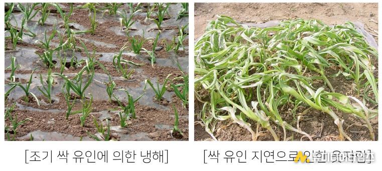 마늘 싹 유인 작업이 지연될 경우 멀칭 내부 온도 상승으로 인해 잎이 웃자라고 연약해져 고온과습 피해 및 병해충 발생으로 수량이 최대 30%까지 감소한다. 반대로 시기가 너무 빠르면 저온에 의한 냉해 피해로 수량이 10~15% 줄어든다.