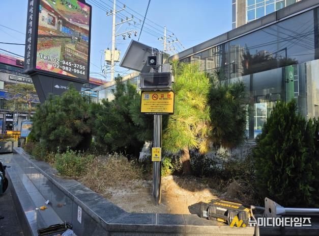 금연벨은 담배 연기로 불편을 겪는 구민이 현장에 설치된 버튼을 누르면, 약 5초 후 금연 안내 방송을 송출하는 스마트 장치다. 이 장치는 태양광 에너지를 전력으로 사용해 친환경적으로 운영되며, 현재 △지하철역 10미터 이내 등 금연구역 13개소 △구청 앞 광장 등 비금연구역 3개소 등 총 16대가 설치되어 가동 중이다.