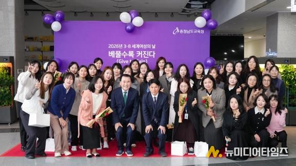충남교육청은 6일 도교육청 안뜨락에서 여성의 존엄과 권리의 의미를 되새기고 존중과 평등의 조직문화를 확산하기 위해 ‘2026년 세계 여성의 날’ 행사를 개최했다.