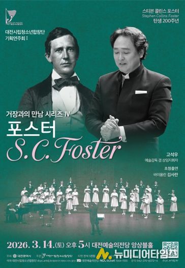 대전시립청소년합창단이 14일 오후 5시 대전예술의전당 앙상블홀에서 기획연주회 ‘거장과의 만남 시리즈 IV - 포스터(S.C.Foster)’를 선보인다.
