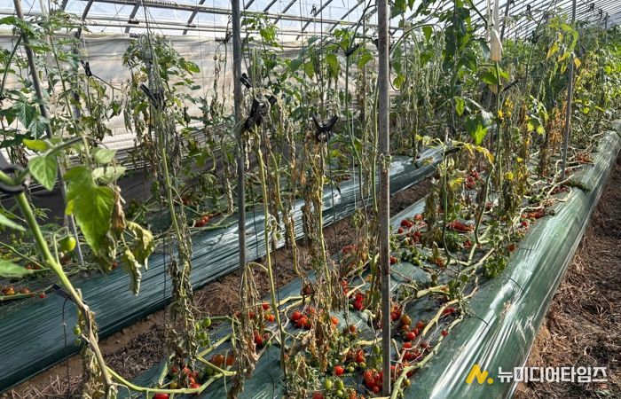 8일 도 농업기술원에 따르면 기온차가 10℃ 이상 벌어지는 날이 이어지면서 온실 내부와 토마토에 결로(이슬)가 발생하는 등 각종 생리장해와 병 발생에 유리한 환경을 조성하고 있다.