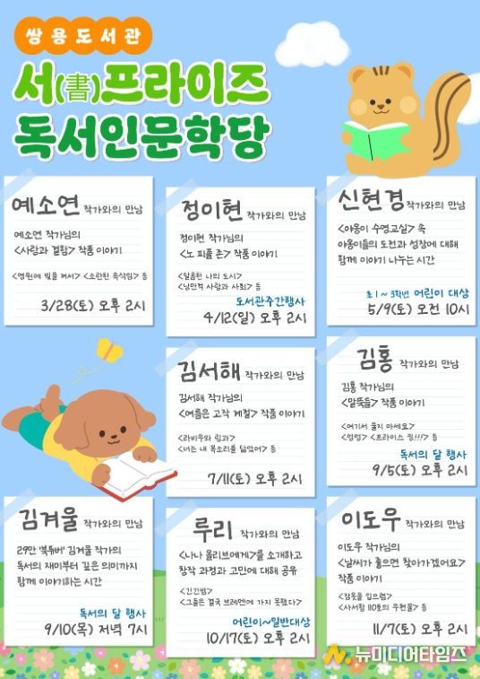 쌍용도서관 관계자는 “이번 프로그램을 통해 시민들에게 작가와 책의 이야기를 가까이에서 만나는 선물같은 시간이 되길 기대한다”고 말했다.
