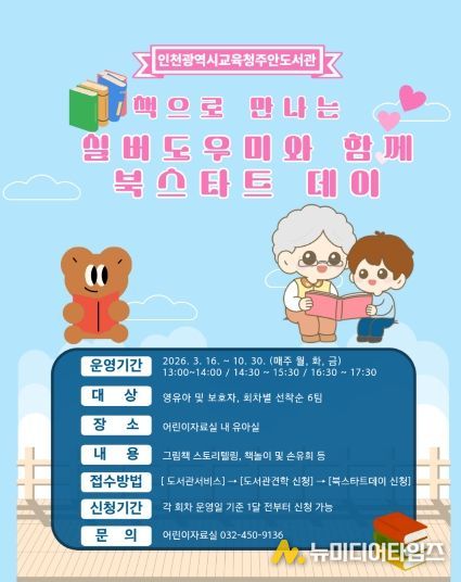 인천광역시교육청주안도서관은 오는 3월 16일부터 10월 30일까지 영유아 및 보호자를 대상으로 ‘책으로 만나는 실버도우미와 함께 북스타트 데이’를 운영한다.
