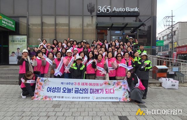 금산군여성단체협의회(회장 임예순)는 지난 9일 금산군청 일원에서 제118주년 3.8세계여성의날을 기념해 행사를 개최했다.