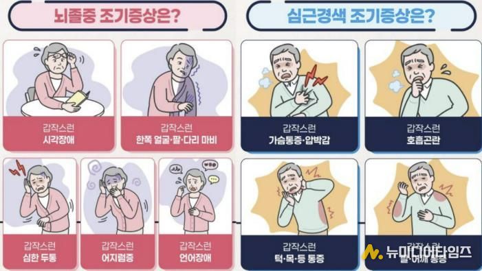 특히 이들 질환은 갑작스러운 마비, 언어장애, 심한 두통, 가슴 통증 등 증상이 갑자기 나타나는 것이 특징으로 이러한 조기증상이 발생하면 즉시 응급의료기관으로 이송돼야 하며, 치료가 빠를수록 회복 가능성은 높아지고 장애 발생과 사망 위험은 크게 낮아진다.
