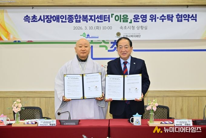 이번 협약은 2026년 3월 말부터 지역 장애인을 대상으로 상담, 재활, 문화·여가 프로그램 등 통합 재활서비스를 제공할 속초시 장애인종합복지센터 ‘이음’의 운영을 위해 마련됐다. 시는 운영 위수탁을 통해 전문성과 경영 노하우를 결합한 안정적인 복지서비스 제공 기반을 마련한다는 방침이다.