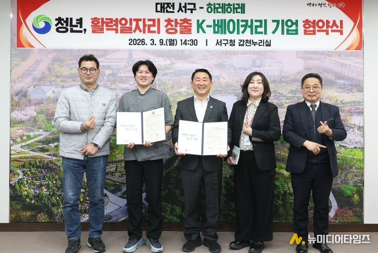 대전 서구는 청년활력일자리창출 11번째 협약 기업으로 지역 대표 K-베이커리 하레하레(대표 이창민)를 선정하고 ‘2026년 청년 활력 일자리 창출’을 위한 업무협약을 체결했다고 10일 밝혔다.