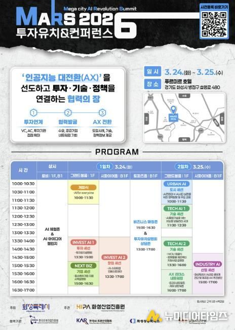 화성특례시가 오는 3월 24일부터 25일까지 이틀간 푸르미르 호텔에서 'MARS 2026 투자유치 & 컨퍼런스'를 개최한다.