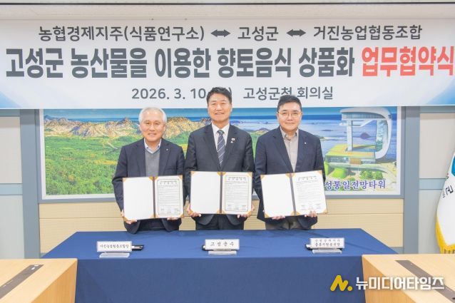 고성군은 3월 10일 군청 회의실에서 농협경제지주 식품연구소, 거진농업협동조합과 ‘감자시루떡 품질 개선 및 마케팅 활성화를 위한 업무협약(MOU)’을 체결했다.