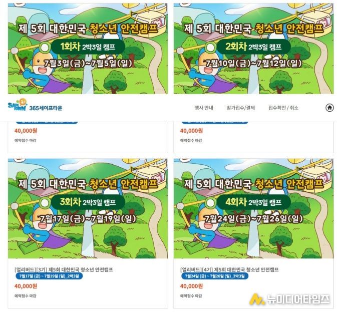 시는 지난 4년간 성공적으로 운영해 온 ‘대한민국 청소년 안전캠프’의 올해 얼리버드 참가자 모집을 지난 3월 5일 시작한 결과, 모집 개시 40분 만에 4개 기수 800명 전원이 마감됐다고 밝혔다.