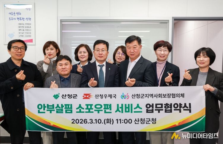 협약에 따라 산청군은 대상 가구 선정과 안부 물품 제공 및 복지 지원을 수행하며, 산청우체국은 집배원 네트워크를 활용해 물품 배달과 대상자의 안부 확인 결과를 회신한다. 산청군지역사회보장협의체는 사업 추진에 필요한 물품 관련 비용을 지원하며 힘을 보탤 계획이다.
