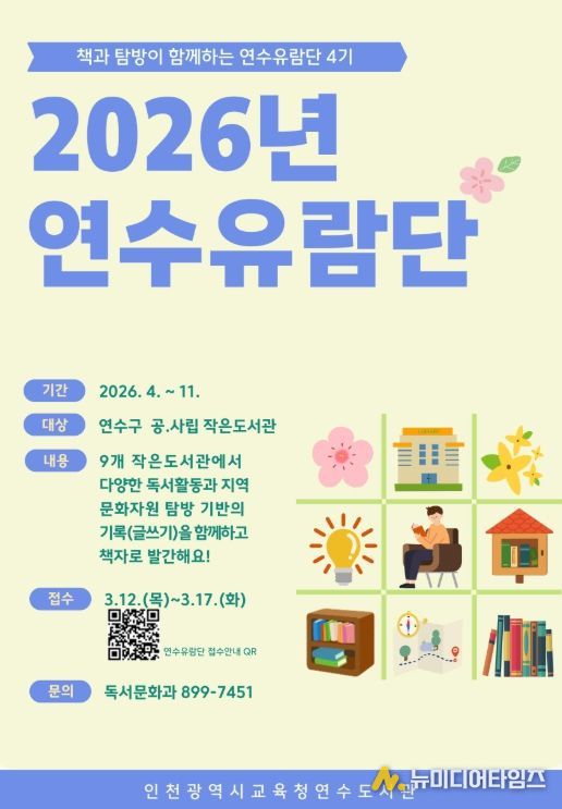 인천광역시교육청연수도서관은 12일부터 연수구 소재 작은도서관을 대상으로 지역 연계 프로그램인 ‘연수유람단’ 참여기관을 모집한다.