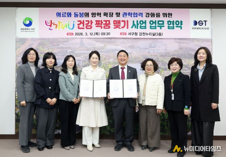 대전 서구는 12일 구청 갑천누리실에서 대전과학기술대학교 혁신지원사업단(단장 양진영)과 의료급여 특화사업인 ‘반가워U 건강짝꿍 맺기’ 추진을 위한 업무 협약을 맺었다.