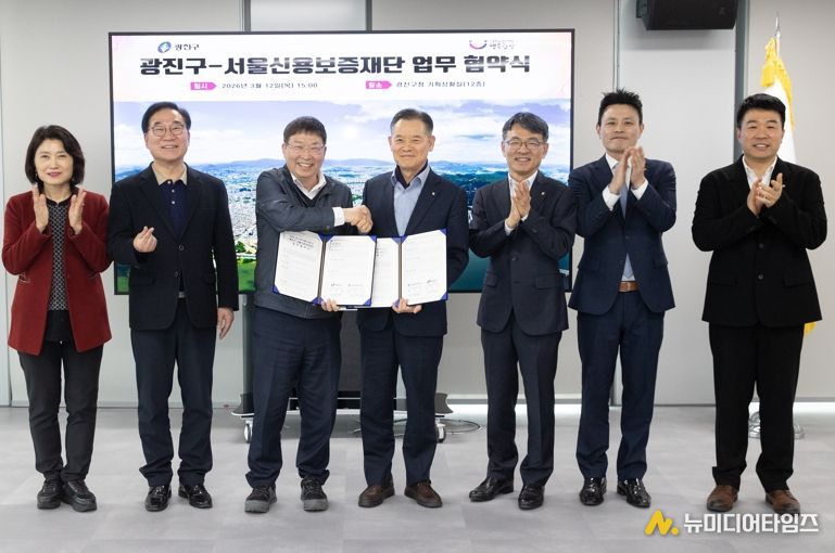 광진구가 3월 12일 서울신용보증재단(이사장 최항도)과 업무협약을 체결하고, 지역상권 활성화와 소상공인 지원을 위한 빅데이터 기반 협력체계 구축에 나섰다.