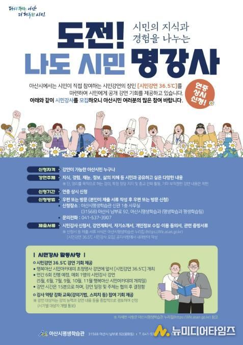 아산시는 시민 각자의 지식과 삶의 이야기를 공유하는 참여형 프로그램 '시민강연 36.5℃'에 함께할 시민강사를 모집한다.