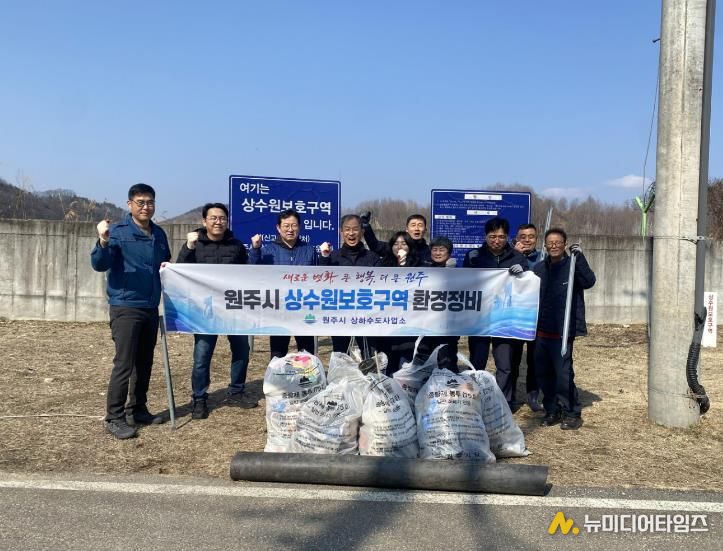 원주시상하수도사업소 직원들이 지난 12일 소초면 장양리에 위치한 원주취수장의 상류 상수원보호구역에서 환경정비 활동을 실시했다.