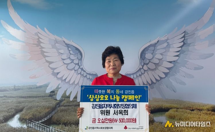 서옥희 위원은 현재 강진읍새마을부녀회장이며 2020년부터 올해까지 매년 50만원씩 삼삼오오 착한기부 나눔 활동에 참여하고 있다.